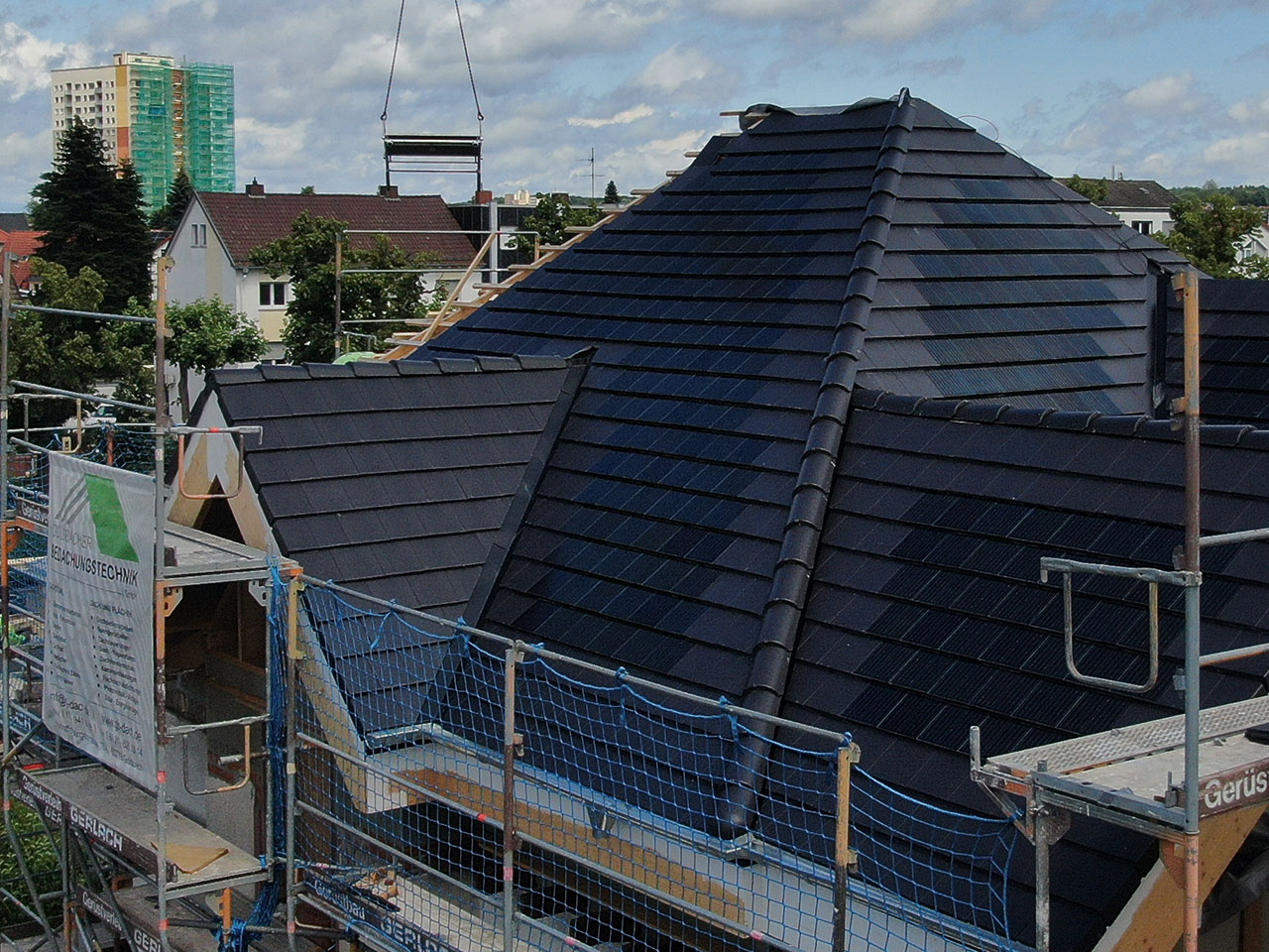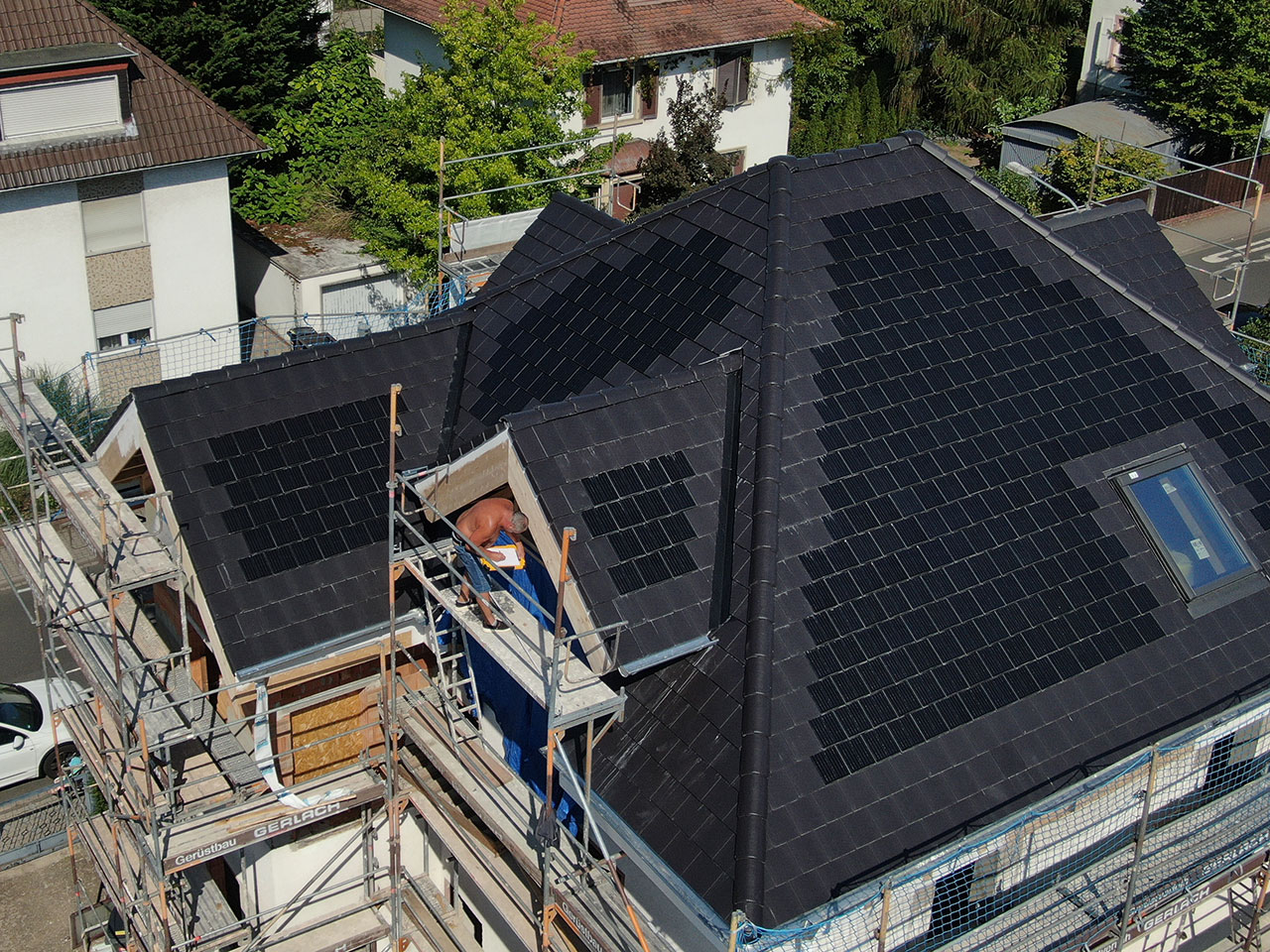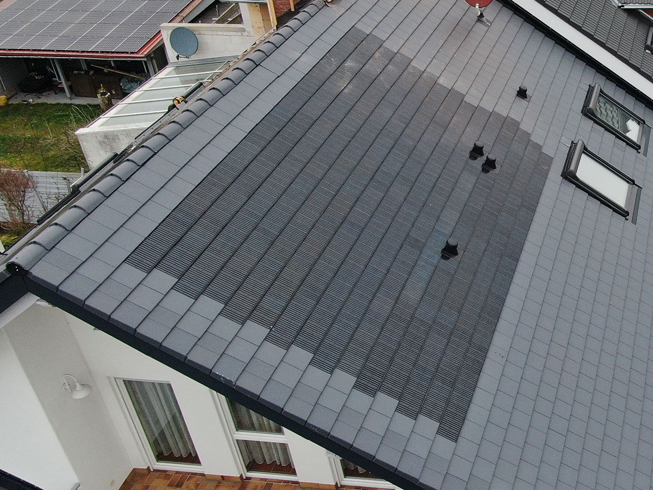Der Generon Solar-Dachstein, wird klassisch verlegt wie normale Ziegeleindeckung, wobei die Ziegel in Reihe miteinander über Stringleitungen verbunden werden.